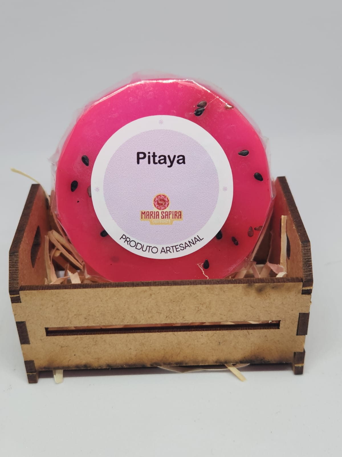 O sabonete artesanal de pitaya é rico em antioxidantes e vitaminas, hidratando e iluminando a pele. Aroma fresco e frutado para um banho revitalizante.