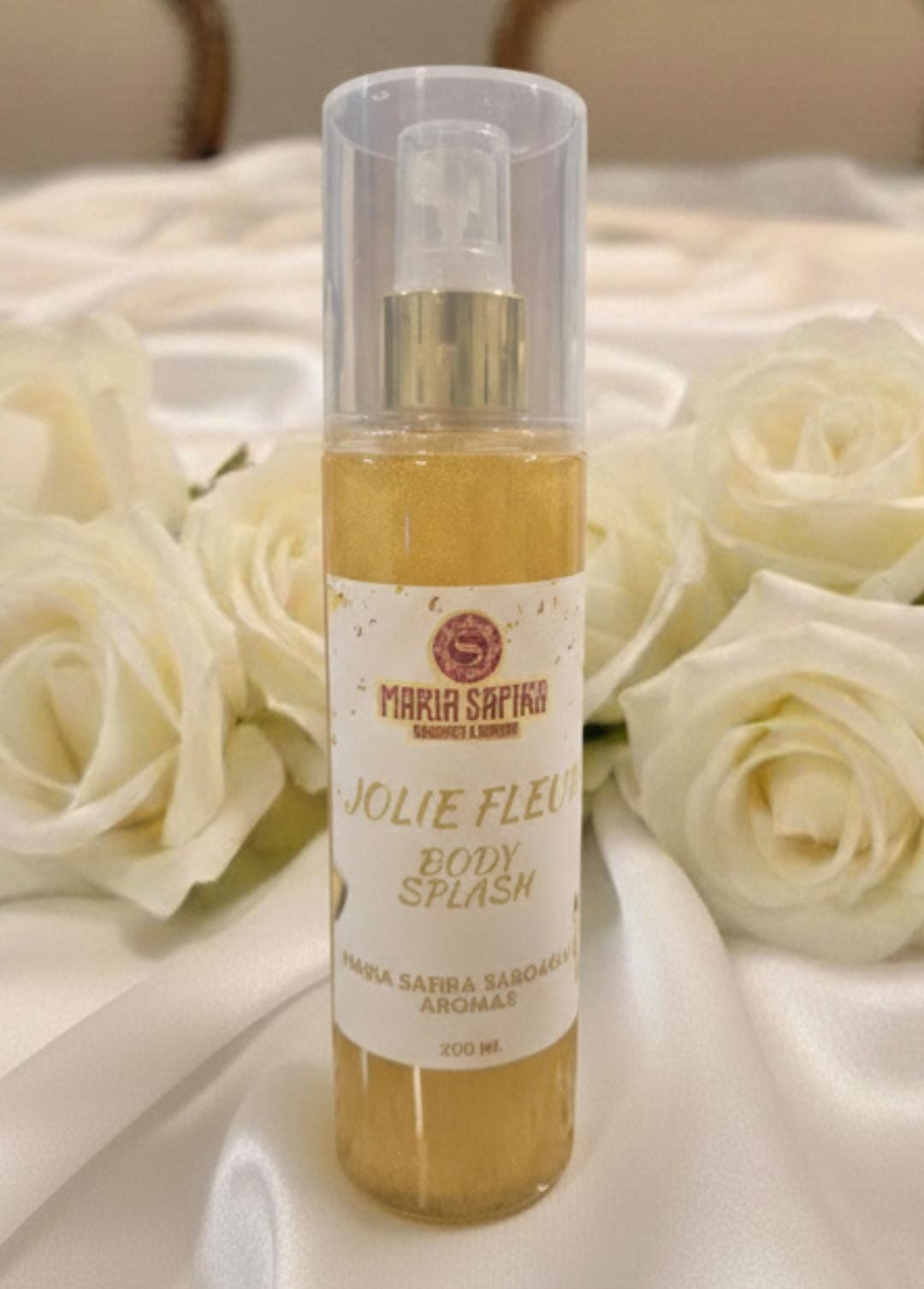 Apresentamos o nosso Body Splash JOLIE FLEUR. Uma fragrância floral solar composta por bergamota, magnólia, jasmim e Pêra, com um toque quente e aveludado de almíscar e Baunilha, que exala sofisticação, delicadeza e poder em cada borrifada. É o toque de ouro que faltava no seu dia a dia! 🌸👑